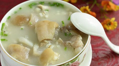 3、猪蹄汤:猪蹄富含胶原蛋白、脂肪及多种营养成分,具有通乳下奶的功效。将猪蹄与黄豆、花生等食材炖煮,熬出的汤汁浓郁鲜香。产后乳汁分泌不足的产妇,适量饮用猪蹄汤,能促进乳汁分泌,满足宝宝的口粮需求。但需注意撇去汤表面的油脂,以免过于油腻影响消化。