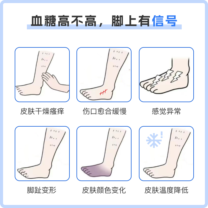 温度感知异常:高血糖还可能影响腿部和脚部对温度的感知能力,使患者对冷热刺激的敏感度降低或出现异常反应。