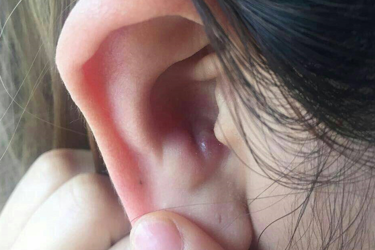 - 当外耳道湿疹发生在耳朵软骨凹槽部位时,如果搔抓过度,导致皮肤破损,继发细菌感染,就会形成脓包。