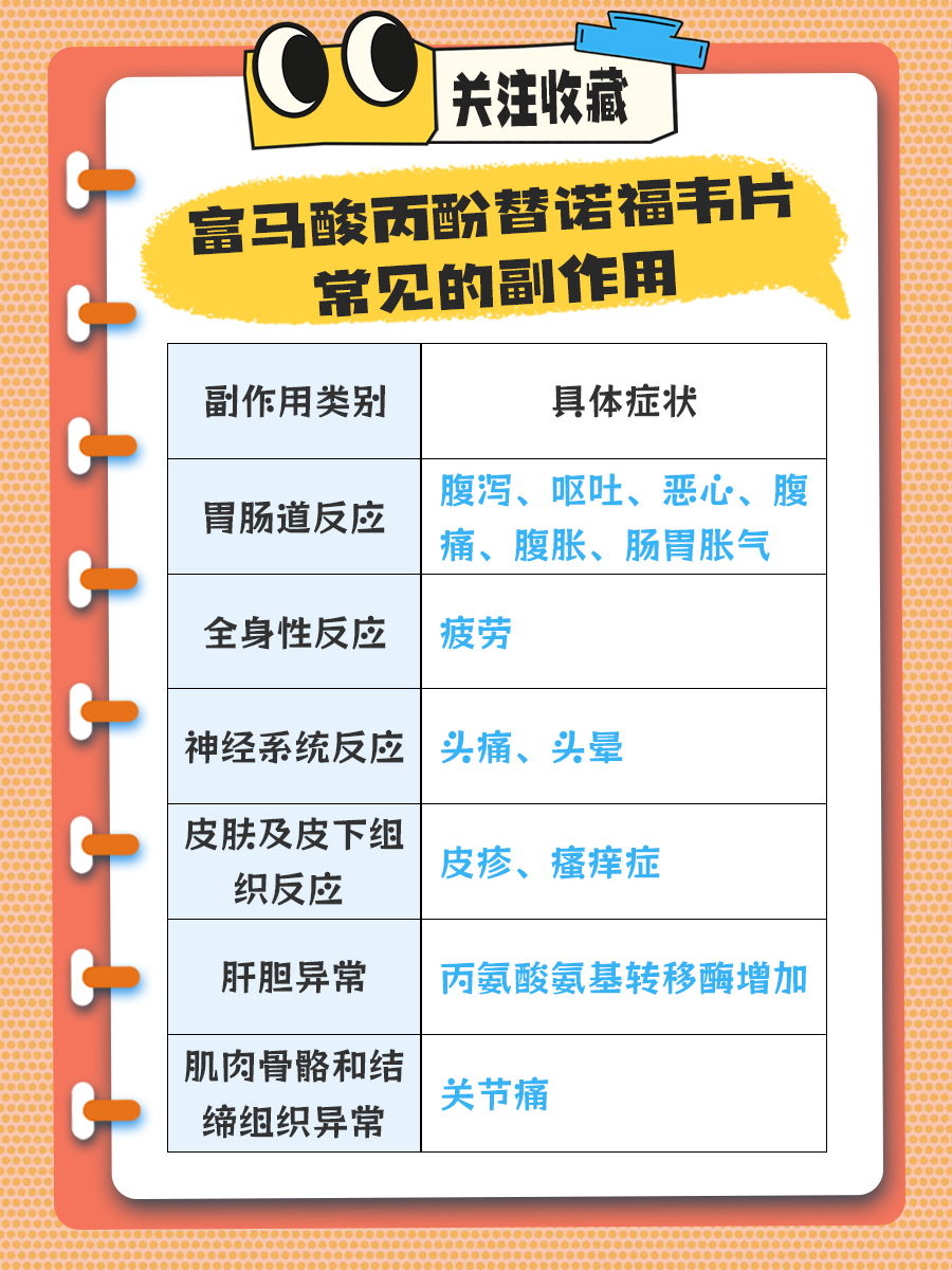 以上列出的副作用并非每个患者都会发生,且其严重程度也因人而异。在服用富马酸丙酚替诺福韦片期间,患者应密切监测自身状况,如有任何不适症状,应及时就医并告知医生。