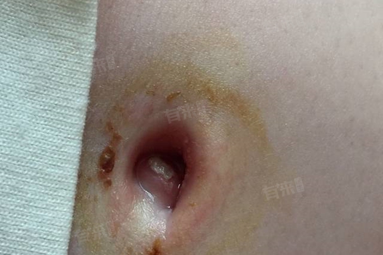 5、脐窦或脐瘘:指从肚脐向内延伸至腹腔内的管道结构未闭合,形成了一个异常通道。脐窦或脐瘘可导致持续性的分泌物排出,这些分泌物可能是清澈的、黏稠的或是含有脓液的。