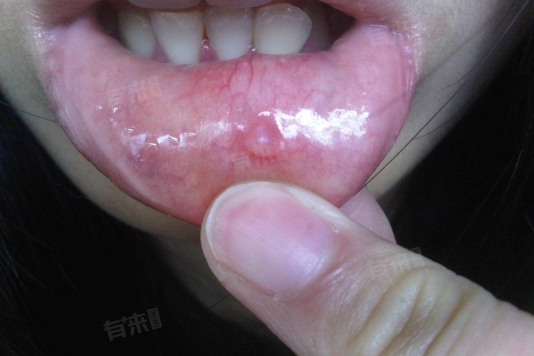 2、黏液腺囊肿:下嘴唇分布着许多黏液腺,当腺体导管堵塞,黏液潴留,就会形成囊肿,表现为黏膜下无痛性肿物。较小的囊肿可能会自行消退,可先观察。若囊肿反复出现或逐渐增大,通常需要手术切除囊肿及相关腺体,防止复发。