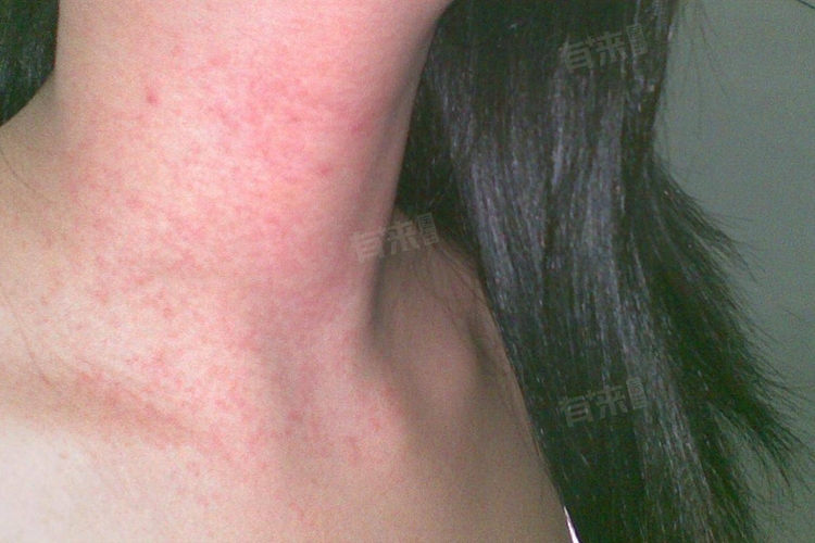 - 受到蚊虫叮咬可能引起丘疹性荨麻疹,导致颈部局部出现红斑、丘疹伴明显的瘙痒感,可遵医嘱口服抗过敏药物进行缓解。