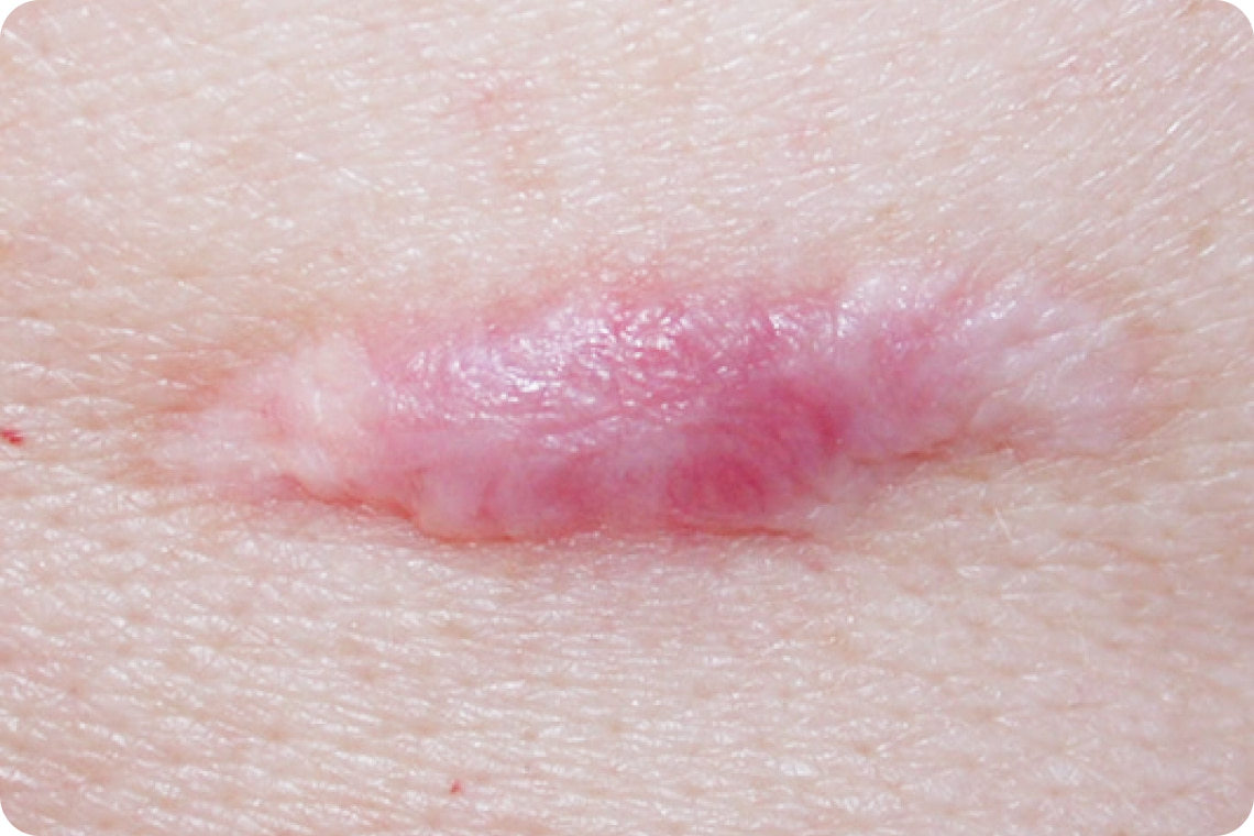 - 外观变化:疤痕突出于皮肤表面,呈红色或紫红色,表面光滑,无毛发等皮肤附属器。形状不规则,边界清晰,一般不超出原始损伤范围。