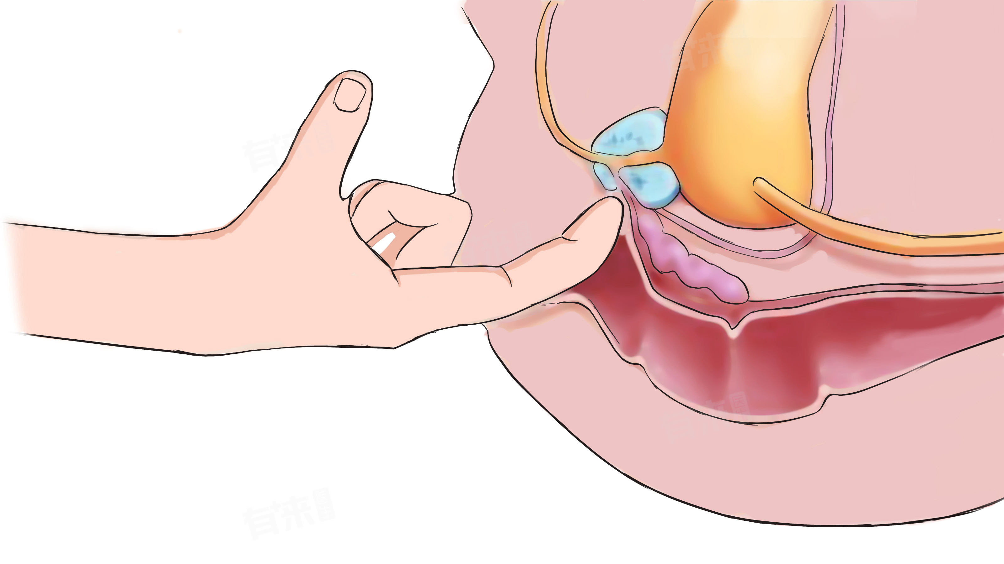 - 三合诊:联合腹部、直肠、阴道三种检查方法。医生指导患者摆好体位后,在检查时将一只手的中指伸入肛门触摸直肠,再将食指放入阴道内,另外一只手放于腹部协助检查。有利于进一步了解子宫后壁、直肠子宫陷凹、宫骶韧带和骨盆后部的病变情况,如子宫颈旁、骶韧带、主韧带、骨盆内壁、侧壁及后壁的病变,以及直肠黏膜和肛门的病变。