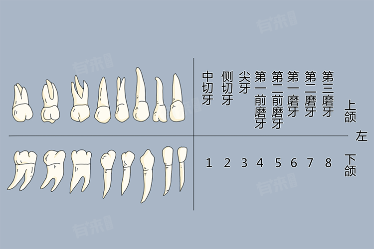 - 恒牙中的后槽牙分别是第一恒磨牙、第二恒磨牙和第三恒磨牙,第一恒磨牙通常在6岁左右萌出,因其特殊的萌出时间,又被形象地称为六龄齿,而且是不会被替换的,所以需要特别保护。第二恒磨牙大约在12-13岁萌出,替换相应的乳磨牙。而智齿的萌出时间则充满变数,因人而异,有些人可能终生都不会长智齿。