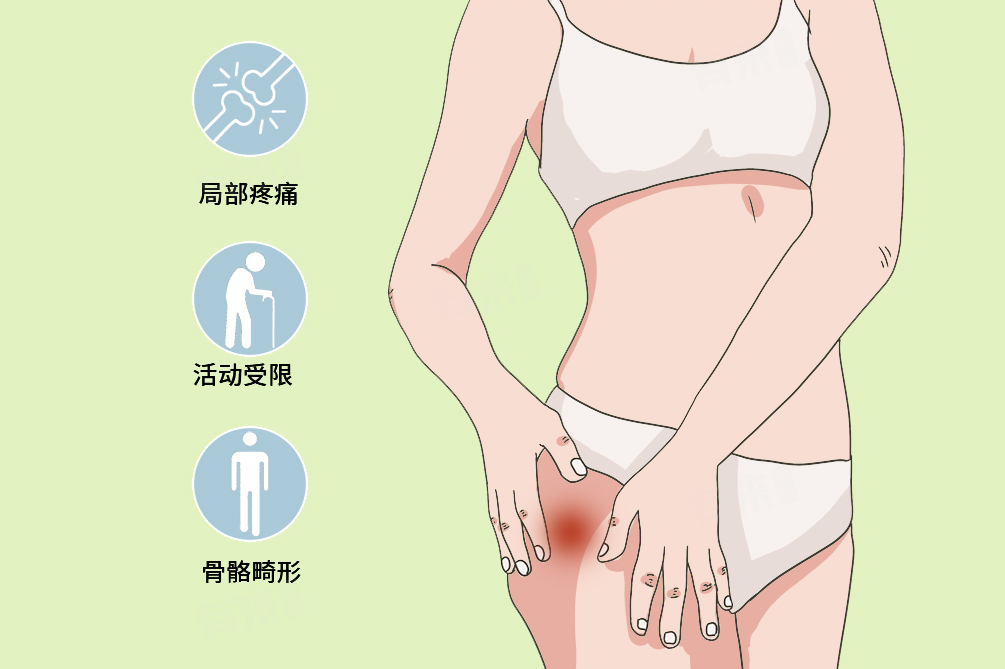 4、肌肉萎缩:长期疼痛和活动受限可能导致患肢肌肉废用性萎缩,表现为腿部肌肉体积减小、力量减弱,不仅影响外观,还可能进一步加重患肢功能障碍。