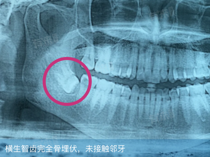 4、邻牙阻力干扰:第二磨牙的位置和形态对智齿萌出方向有重要影响,若第二磨牙位置过于偏向舌侧或颊侧,或存在牙体形态异常、邻面龋坏等情况,会改变智齿萌出时的受力方向,使智齿在萌出过程中受到异常阻力,最终横向生长。