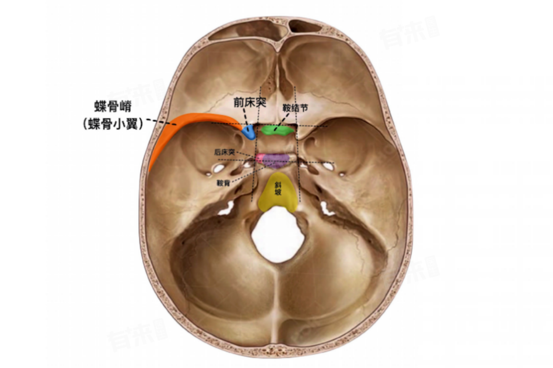 - 鞍区内的主要结构包括蝶鞍、鞍膈、垂体等,蝶鞍是颅中窝正中部的一个形似马鞍的结构,包括垂体窝、鞍结节、中床突、交叉前沟、视神经管等多个部分。鞍膈则是颅底的硬脑膜覆盖在垂体窝上方的水平位的膈板,其表面下凹或平直,中央的小孔称膈孔,有垂体柄通过。垂体则位于蝶鞍的垂体窝内,是内分泌系统中的一个重要腺体,负责分泌多种激素,调节人体的生长发育、代谢等多个生理过程。