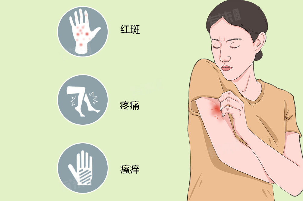 - 过敏性皮肤病的症状多种多样,但通常包括皮肤红斑、瘙痒、起疹、干燥、疼痛、水疱等。这些症状可能会单独出现,也可能会同时出现。如湿疹患者可能会出现皮肤发红、瘙痒、起疹和皮肤干燥等症状。接触性皮炎患者则可能在接触过敏原后出现皮肤红肿、瘙痒和水疱等症状。