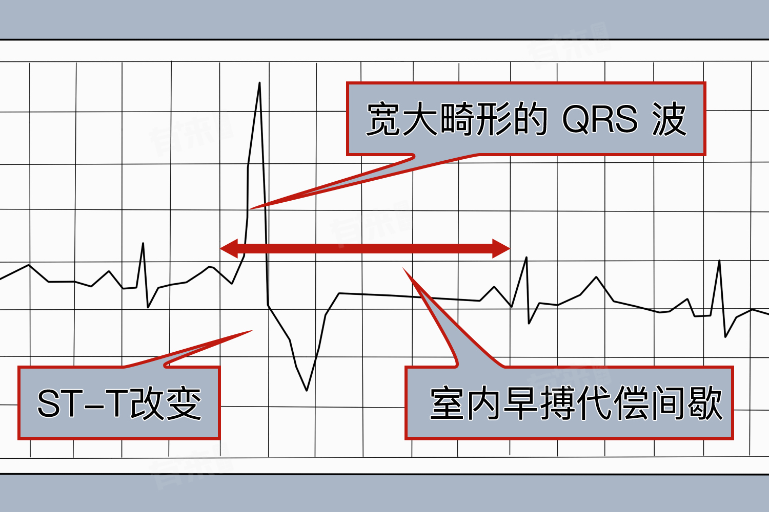 3、完全性代偿间歇:完全性代偿间歇是室性早搏心电图的第三个显著特点。它指的是在室性早搏发生后,通常会出现一个较长的代偿间歇,使得下一个窦性搏动的时间间隔延长至正常窦性周期的两倍。这一特点是由于室性早搏打断了正常的窦性节律,导致窦房结在一段时间内无法发放冲动,从而使得心脏节律出现短暂的停顿。