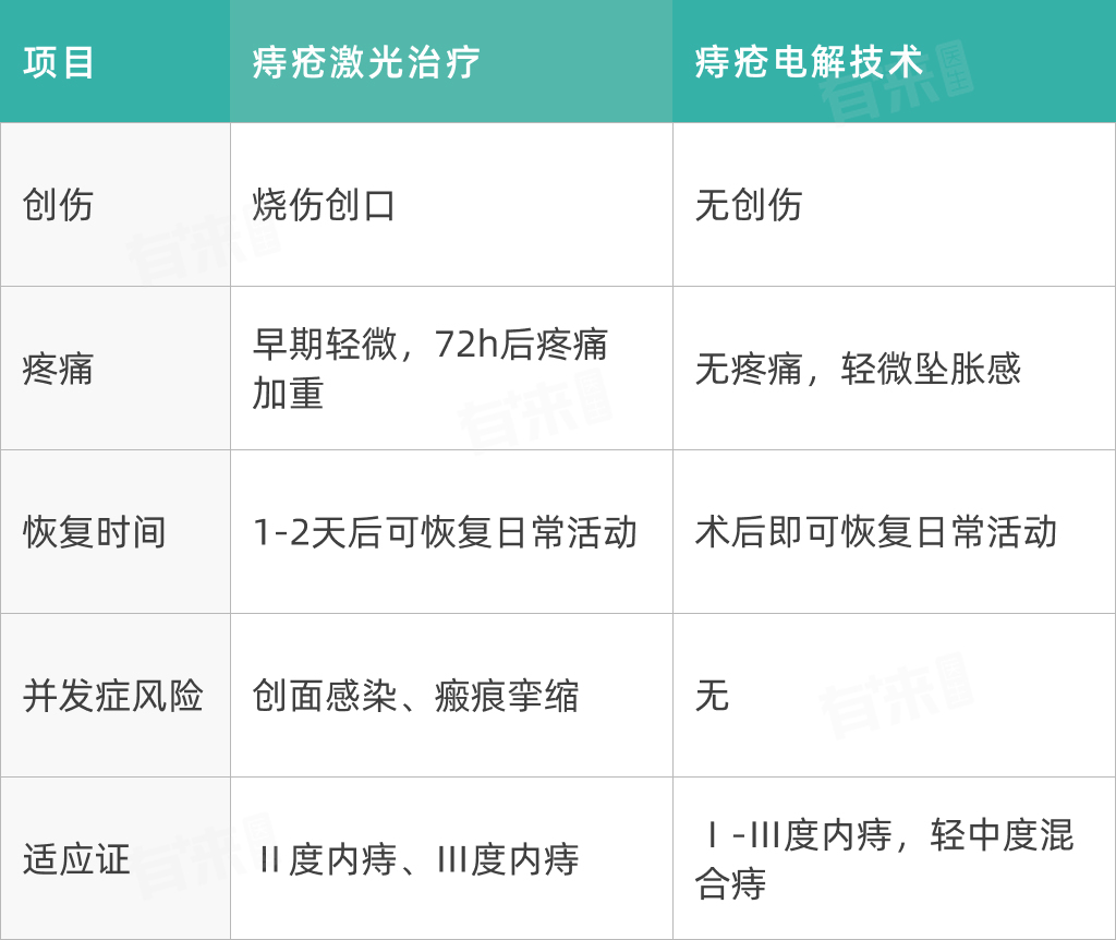 2.激光治疗:此为高温的“组织消融术”,激光束聚焦产生高温,精准封闭痔核血管,使得其萎缩。
