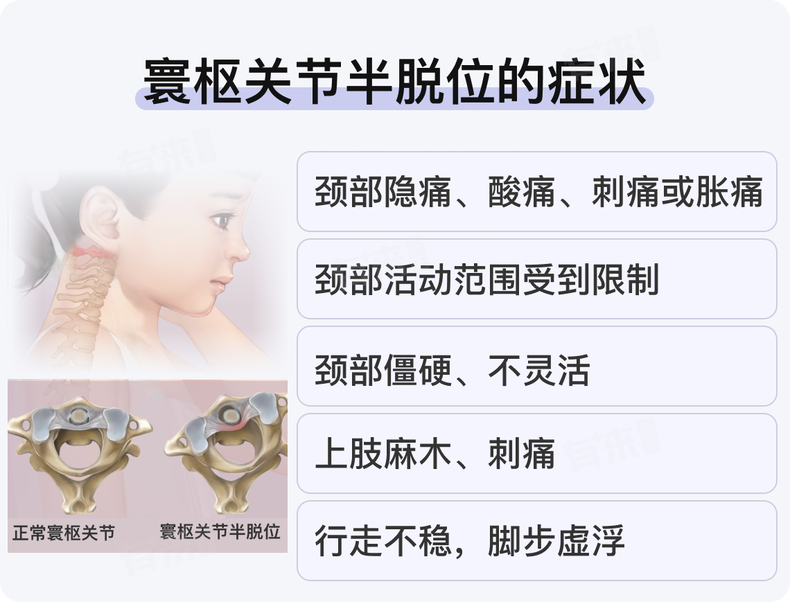 - 如果儿童在寰枢椎半脱位的同时还伴有其他合并症,如颈部韧带撕裂、肌肉拉伤等,将增加治疗的复杂性和恢复时间,在治疗过程中,需要同时处理上述合并症,整体恢复时间可能会延长至数月。