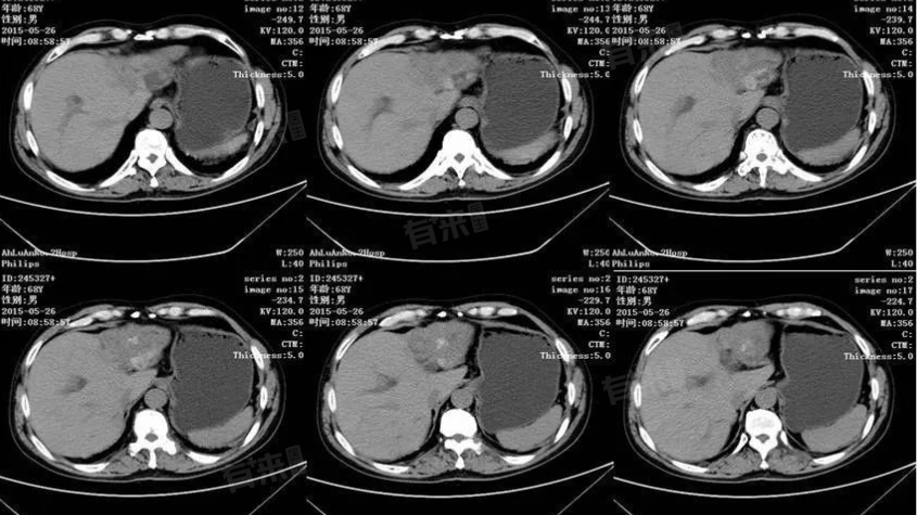 2、肝囊肿:肝囊肿通常是由于先天发育异常或后天的创伤、炎症等引起,囊肿内部充满液体,在CT上表现为边界清晰的低密度灶,多数肝囊肿较小且无症状,定期复查即可,若囊肿较大,可能会压迫周围组织,引起腹痛、腹胀等症状。