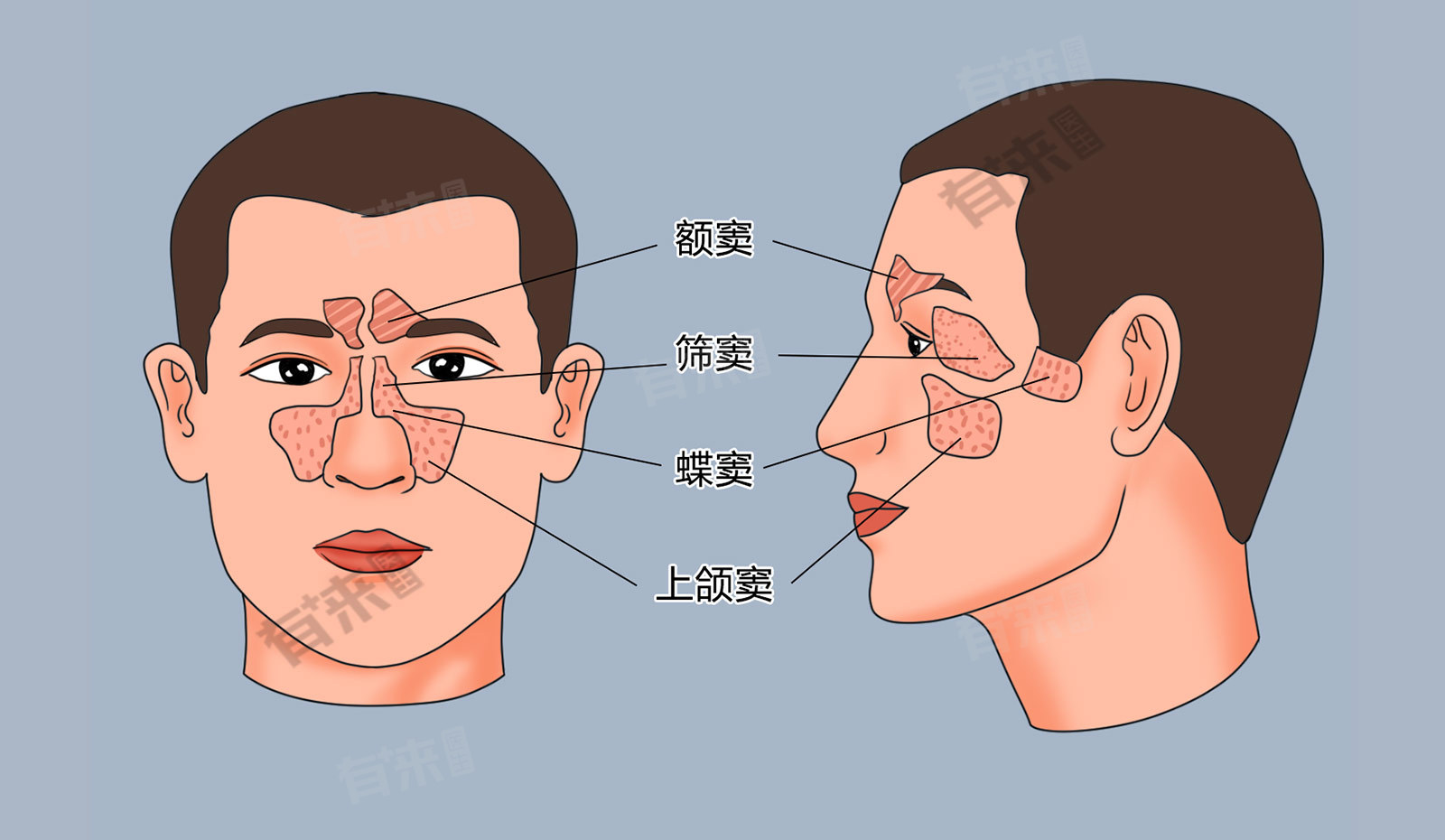 鼻旁窦包括四对分别为上颌窦、筛窦、额窦和蝶窦,分布于鼻腔周围的颅骨内不仅能辅助鼻腔调节空气湿度和温度,还在发音共鸣方面发挥功效,且不同窦腔因位置与结构差异,易出现不同状况。