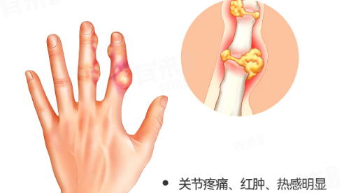 - 痛风是由于体内尿酸水平过高,导致尿酸结晶在关节内沉积而引发的疾病。如果尿酸结晶仅沉积在一个手指关节,就可能导致该手指关节出现急性关节炎,从而引起剧烈的单指关节疼痛。此外,还可能伴有局部皮肤红肿、皮温升高等症状,严重时甚至可能出现关节畸形。