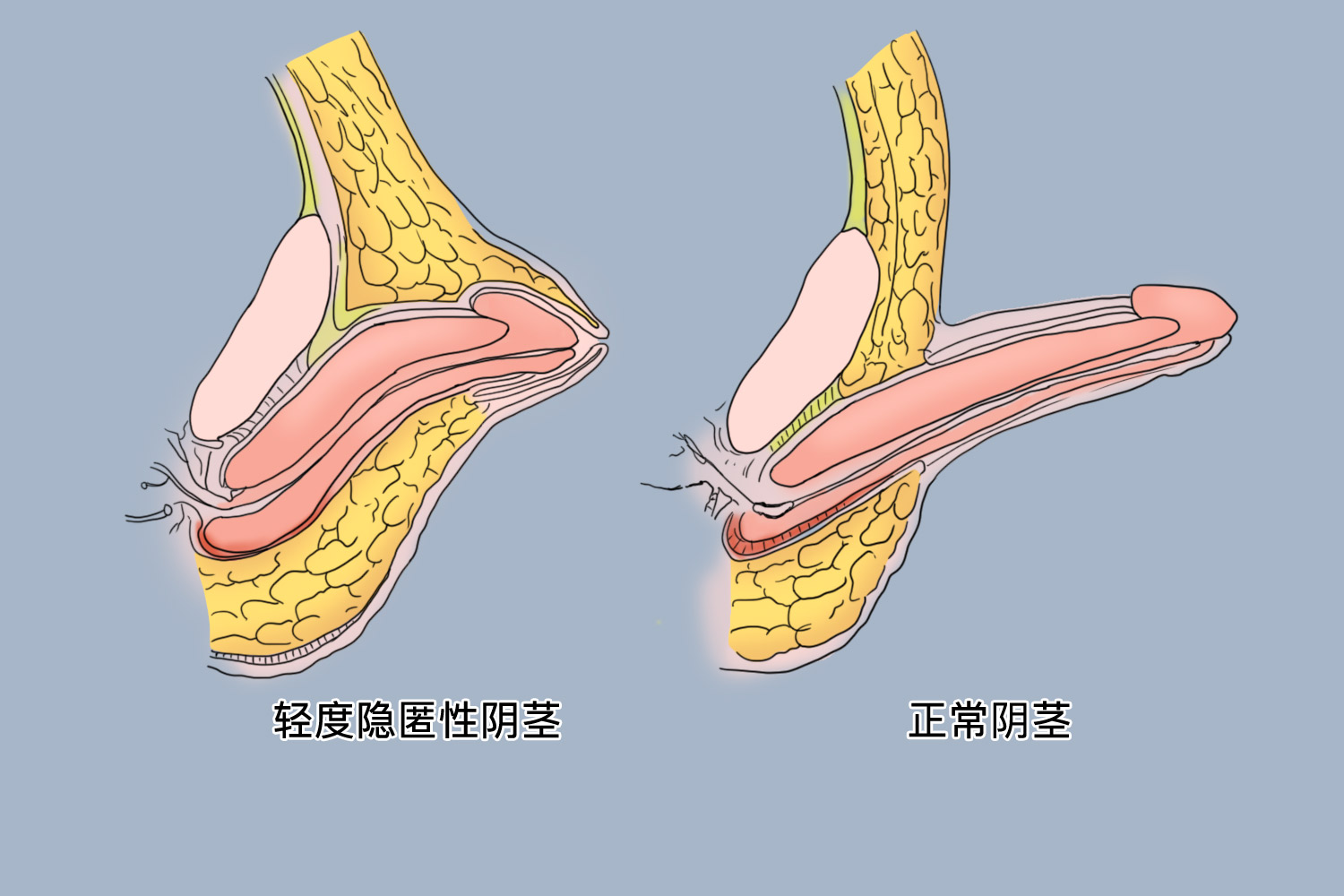 隐匿性包茎,是一种较为特殊的包茎类型,指的是阴茎体被埋藏于耻骨前皮下脂肪内,从外观上看,阴茎显得短小,但用手向后推挤阴茎根部的皮肤时,可显示正常的阴茎体。