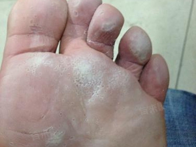 5、真菌感染:脚底受到真菌感染,如足癣,真菌在繁殖过程中会破坏皮肤角质层,导致皮肤代谢异常,出现发白、脱皮、瘙痒等症状。严重时,还可能出现水泡、糜烂等表现。