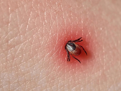 在户外活动后应及时检查身体,若发现蜱虫叮咬,切勿强行拔出,可用酒精涂抹使其松口,然后用镊子取出,若出现不适及时就医。