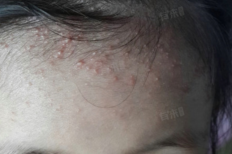 - 宝宝头上的红色痱子通常表现为针头大小的红色丘疹或丘疱疹,周围有红晕,伴有瘙痒感。痱子多发生于头皮、前额、颈部等易出汗的部位,严重时痱子可能会连成一片,形成密集的红色斑块,甚至引发皮肤感染。