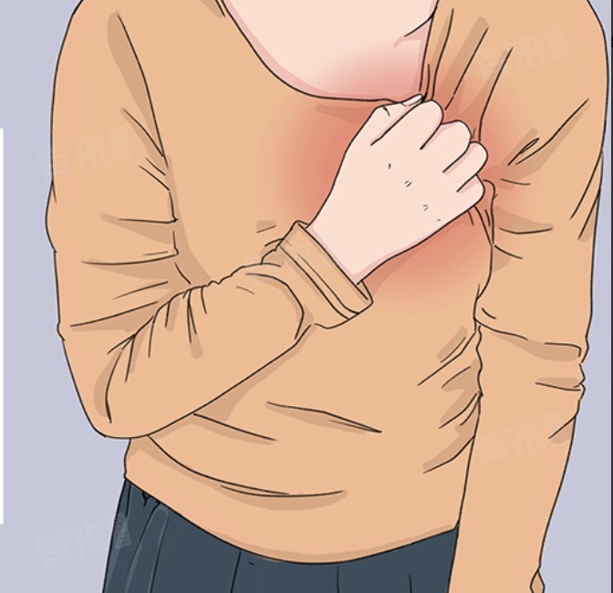 - 乳腺炎:哺乳期女性容易患乳腺炎,表现为乳房红肿、疼痛,疼痛可放射至左胸下面。