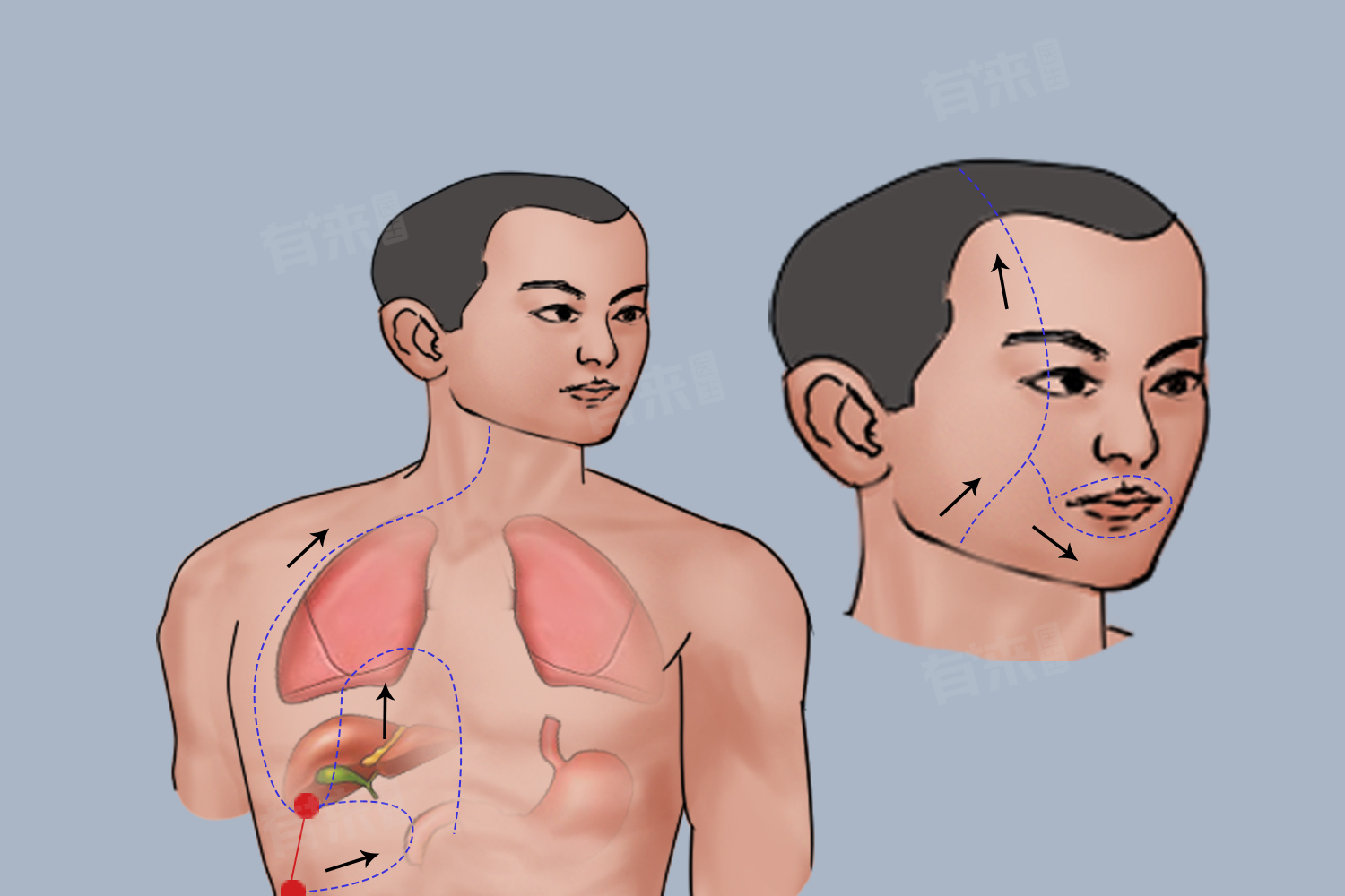 - 功能特点:肝经当令时,肝脏发挥其藏血功能,调节全身血液分布,确保各脏腑得到充足的血液滋养。此时肝脏通过一系列生化反应,清除血液中的毒素和废物,同时合成新的营养物质,如蛋白质、凝血因子等,以维持血液的正常功能和身体的代谢平衡。