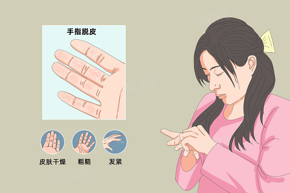 1、皮肤干燥:在气候干燥的季节,或者儿童日常洗手过于频繁且不注意保湿时,手指肚皮肤的水分流失较快,角质层水分含量降低,皮肤的屏障功能减弱,就容易出现脱皮现象。这种脱皮通常表现为手指肚皮肤干燥、粗糙,有细小的鳞屑,一般没有明显的瘙痒或疼痛等不适症状。