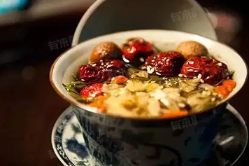 - 三炮台茶融合了多种食材,如红枣、桂圆、枸杞、葡萄干等,都具有去腻生津的功效,能够改善口感,促进唾液分泌,缓解口干舌燥的症状。