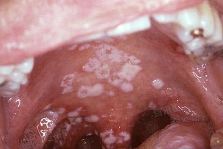 - 是常见的口腔黏膜慢性炎症性疾病,可表现为口腔黏膜出现白色条纹、斑块等病损,其病因尚不明确,可能与免疫、遗传、感染等多种因素有关。扁平苔藓的白色斑块与口腔黏膜白斑病有时难以区分,病理检查可见上皮基底细胞液化变性,固有层有淋巴细胞浸润带,且有一定恶变倾向。