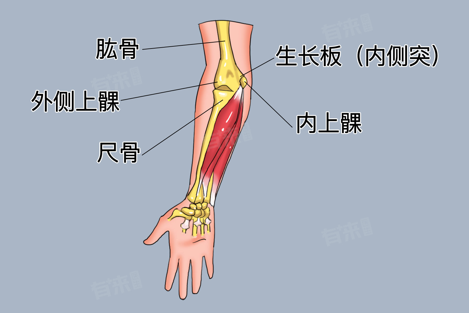 - 肘部:在肘部的两侧,可以摸到肱骨的下端。其中,外侧的凸起是肱骨外上髁,内侧的凸起是肱骨内上髁。这些部位是许多肌肉和韧带的附着点,容易受到损伤。