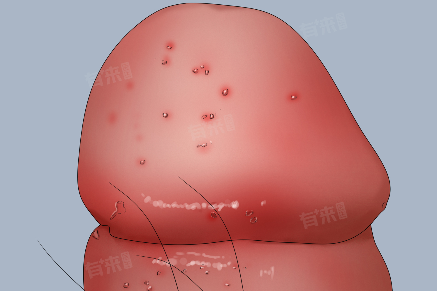 2、性传播疾病:如尖锐湿疣、梅毒等,也可能在龟头上出现红点。尖锐湿疣通常表现为红色或污灰色的丘疹,逐渐增多增大,形成乳头样或菜花样赘生物。梅毒在一期硬下疳时,可出现单个无痛性红斑,迅速发展为糜烂或浅溃疡。对于性传播疾病,应及时就医进行相关检查,明确诊断后采取规范的抗病毒、抗梅毒等治疗,如使用青霉素治疗梅毒,激光、冷冻等方法去除尖锐湿疣疣体。