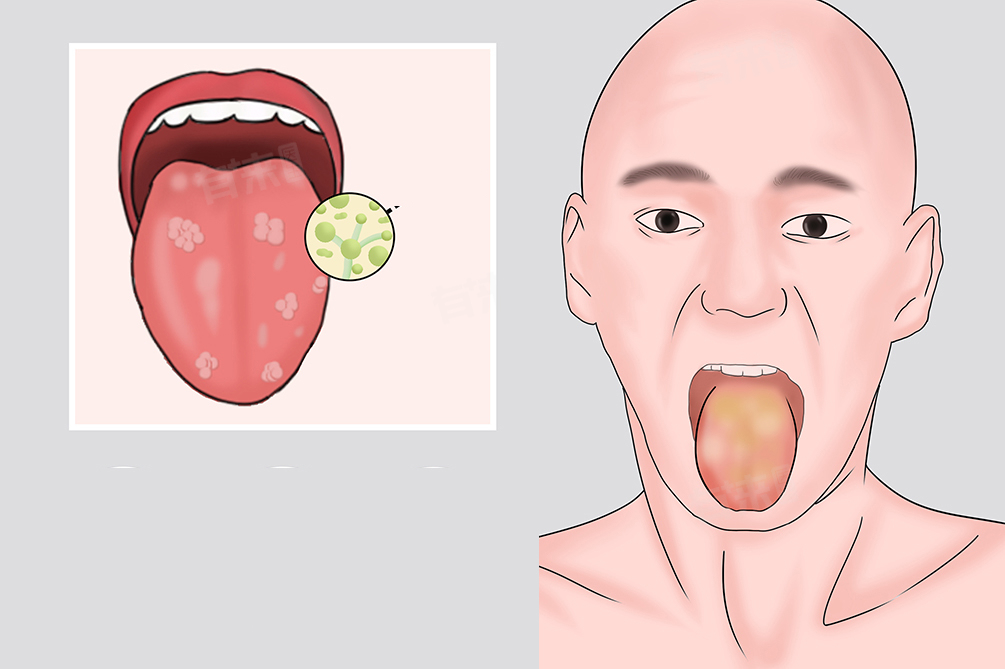 2、鹅口疮:念珠菌过度生长,特别是在免疫力低下时,会导致口腔黏膜上出现白色奶皮状膜,一般伴有口腔干燥、疼痛或灼热感。可以使用抗真菌药物,并保持口腔清洁。