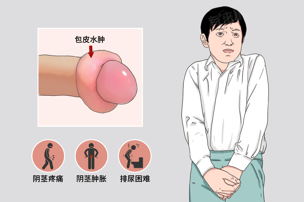 - 包皮会迅速出现肿胀,这是包皮嵌顿后的典型症状之一。肿胀一般从包皮口开始,逐渐向整个包皮蔓延。肿胀的原因是由于包皮口的紧缩,导致静脉回流受阻,血液在包皮内淤积,使包皮组织充血、水肿。