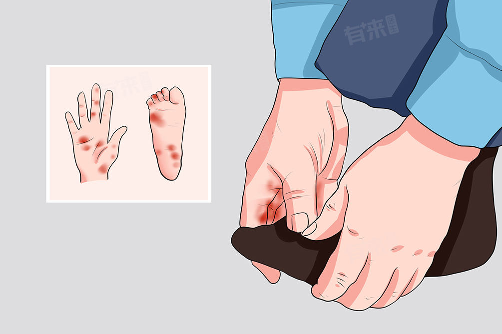 2、感染性疾病:多种感染可致手脚红疹子,如手足口病,主要由肠道病毒引起,多见于儿童,手脚部位会出现散在的红疹子,常伴有发热、口腔疱疹等症状,具有一定传染性,真菌感染也可引发,像手足癣,因皮肤癣菌感染手脚皮肤,初期表现为红斑、丘疹、水疱,伴有瘙痒,多因接触感染源或自身其他部位癣病蔓延所致。