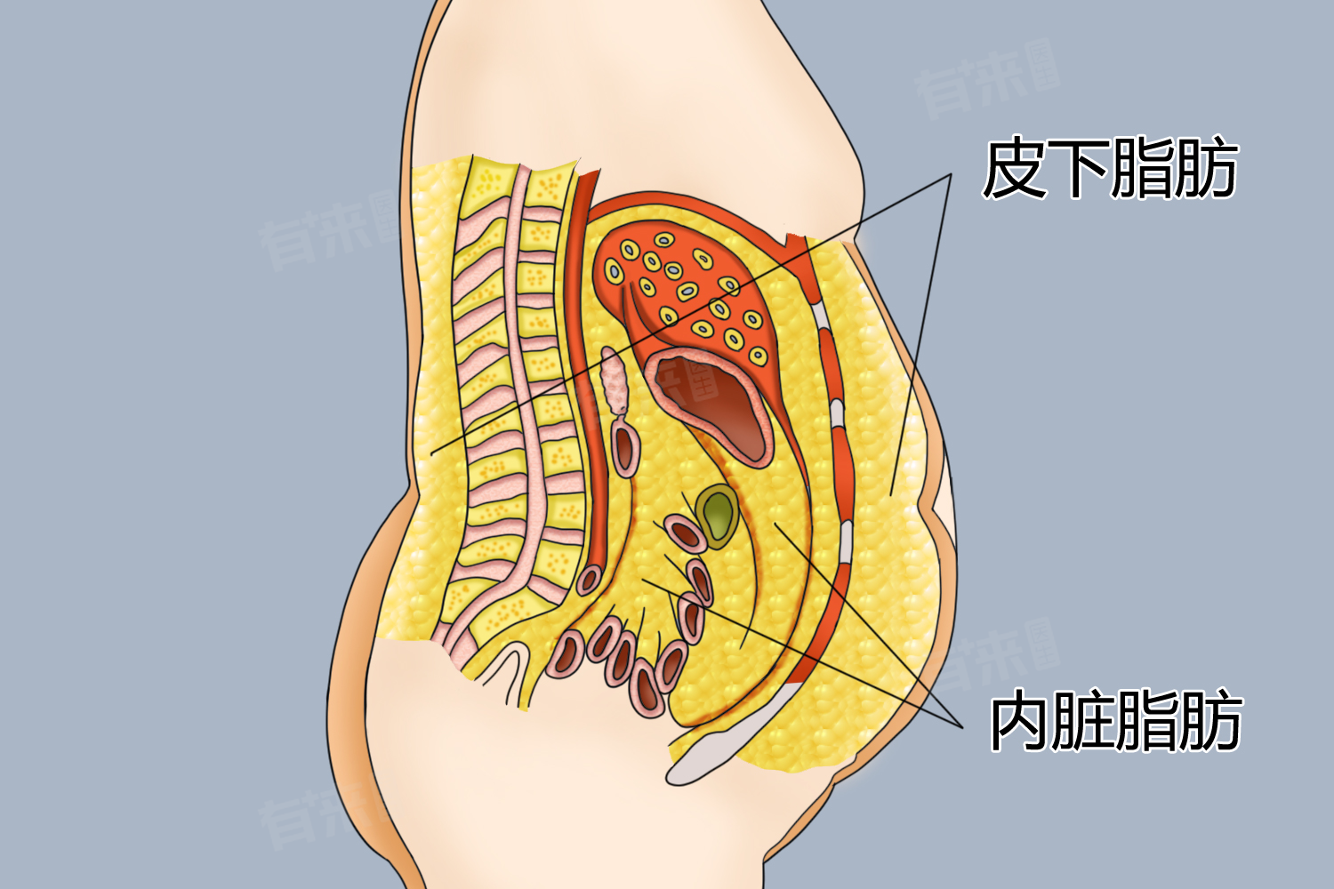 - 脂肪组织并非只是单纯的能量储存库,还是一个重要的内分泌器官。脂肪细胞能够分泌多种生物活性物质,如瘦素、脂联素、抵抗素等。瘦素能够作用于下丘脑,调节食欲和能量代谢,当体内脂肪储存过多时,瘦素分泌增加,向大脑发出“饱腹感”信号,减少进食量。