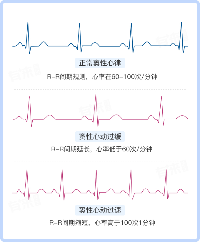 - 窦性心律:主要描述的是心脏电活动的节律和起源,只要心脏的电活动是由窦房结发起,并按照正常的传导路径进行,都可称为窦性心律,包括正常的窦性心律以及一些窦性心律失常,如窦性心动过速、窦性心动过缓、窦性心律不齐等。