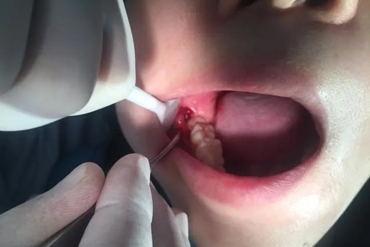 3、引起反复炎症:如阻生齿无法正常萌出,牙冠周围软组织反复发生炎症(如冠周炎),影响患者正常生活,应拔除。