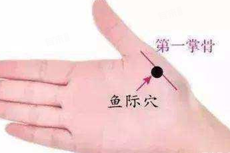 鱼际穴位于手掌外侧,第一掌骨桡侧中点赤白肉际处,即手背与手心皮肤交接的地方,形似鱼腹,故名鱼际,具有清肺热、平咳喘、利咽喉、消疳积、舒经活络、止痛等多重功效。