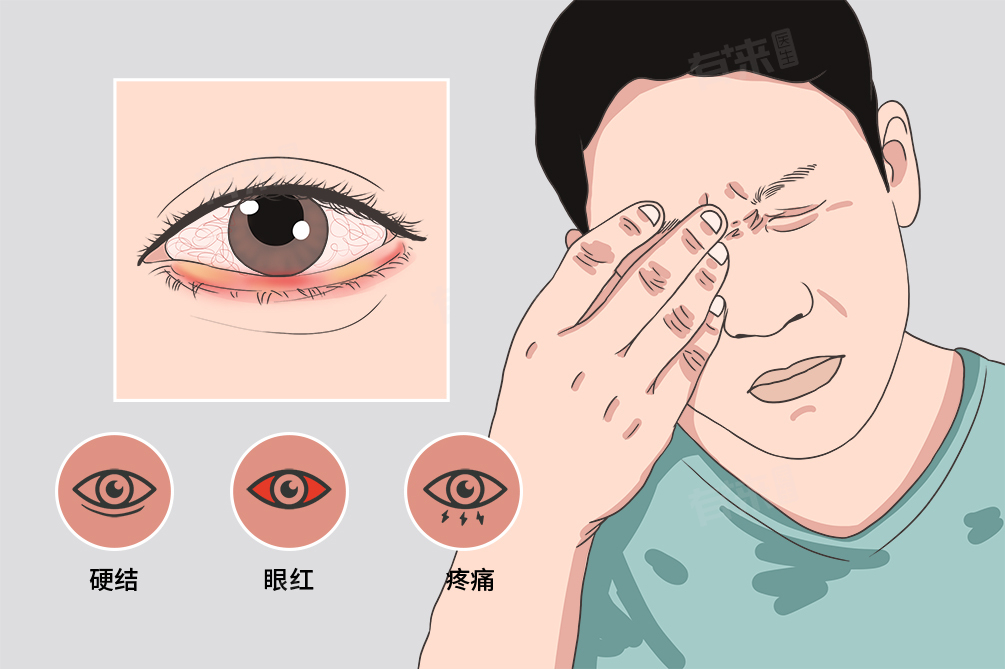 3、硬结形成:在眼睑内部靠近睫毛根部的地方,可以摸到一个坚硬的小结节,这是由于腺体堵塞并发炎造成的,这个硬结初期可能很小,但随着时间推移,它会变得更大更硬,有时甚至可以在外观上看到一个小突起。