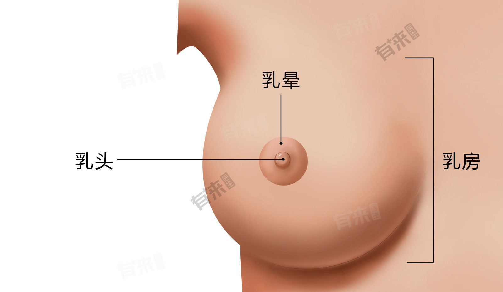 - 除了整体形态外,乳房表面也可能展现出独特的特征,比如轻微的凹凸不平或是所谓的“橘皮样变”,后者有时与水肿相关,但并不总是意味着存在健康问题。乳头的颜色可以从浅粉色到深棕色不等,形态上也可能是平坦、突出甚至是内陷的。乳晕部分则围绕着乳头,其大小和颜色同样存在很大变异,有些人的乳晕较大且颜色较深,而有些人则相反。