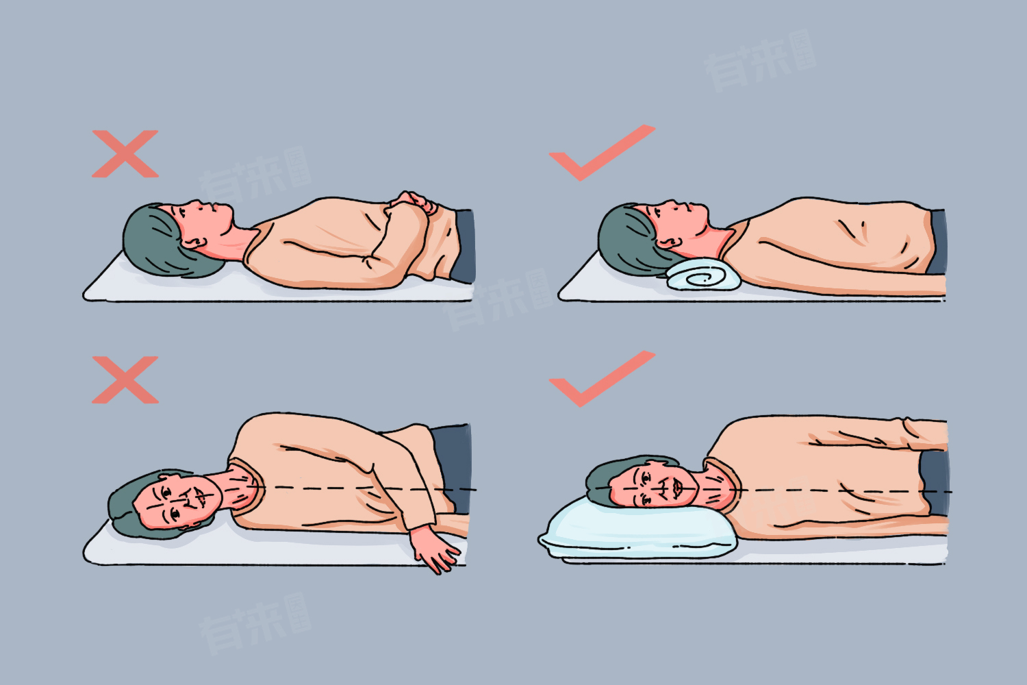 2、仰卧位:仰卧位是较为推荐的睡姿,尤其是对于颈椎病症状较重的患者,在仰卧位时,应选择一个能够支撑颈部、使头部与身体保持水平线的枕头,避免使用过软或过高的枕头,以免加重颈部负担。也可以在膝盖下方垫上一个软垫,使下肢得到放松,有助于减轻腰部压力。
