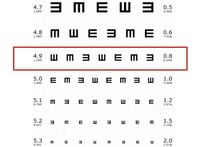 眼睛视力4.8与近视度数之间并没有直接的等量关系,一般来说,视力4.8在视力表上相当于国际标准视力表的0.6。根据临床经验,视力4.8可能对应的近视度数在100度到200度,但这只是一个大概的数值范围,并不能作为确切的诊断依据。因为每个人的眼睛调节能力不同,所以同样的视力可能对应不同的近视度数。