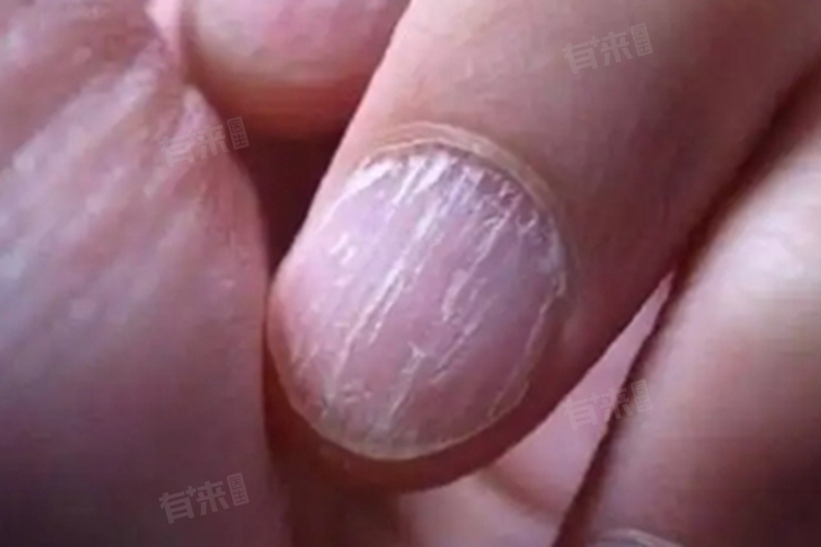 4、指甲疾病:多种指甲疾病会导致指甲开裂。灰指甲(甲癣)是由真菌感染引起的,真菌侵入指甲后,会破坏指甲的角质层,使指甲变厚、变脆、易碎,出现开裂、脱落等症状;甲沟炎会引起指甲周围组织发炎,炎症蔓延至指甲,会影响指甲的生长,导致指甲变形、开裂;此外,扁平苔藓、银屑病等皮肤病累及指甲时,也会使指甲出现凹陷、开裂、剥落等异常表现。