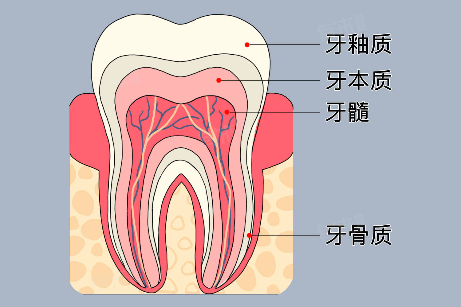 - 从发育角度来看,牙本质是在牙齿形成过程中最早开始矿化的组织之一,由牙乳头中的成牙本质细胞分泌基质并进行矿化而成。随着牙齿的成长,新的牙本质不断形成,特别是在受到外界刺激如龋病、磨损或者修复治疗后,成牙本质细胞会产生修复性牙本质来保护牙髓免受进一步伤害,这种动态变化特性使得牙本质在牙齿一生中持续扮演重要角色。