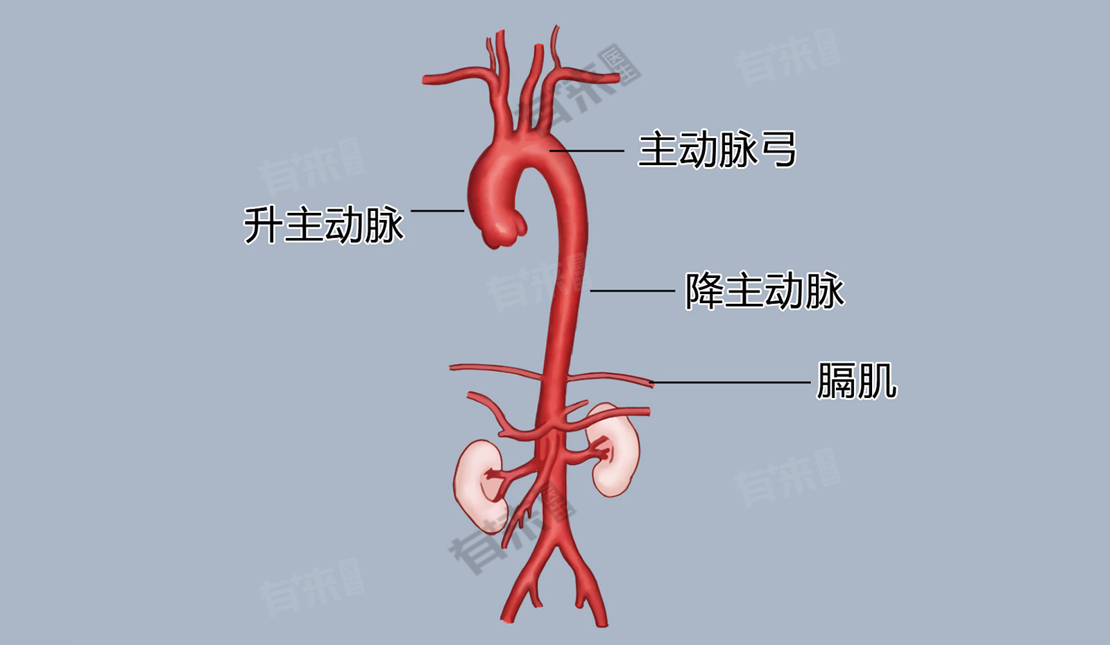 2、主动脉的作用与位置:主动脉是体内最粗的动脉管,它从左心室发出,经过许多分支输送血液到各个器官与全身各处,被称为大动脉。主动脉是体循环的动脉主干,分为升主动脉、主动脉弓和降主动脉等部分。这些部分共同协作,将富含氧和营养物质的动脉血输送到全身各处。