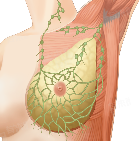 2、腋窝:腋窝淋巴结群位于腋窝深处,紧贴腋血管排列。主要负责收集来自上肢、胸壁、乳房外侧壁和背部浅层淋巴管的淋巴液。因此,在乳腺癌等疾病的诊断中,腋窝淋巴结的状态是评估病情及制定治疗方案的重要依据。