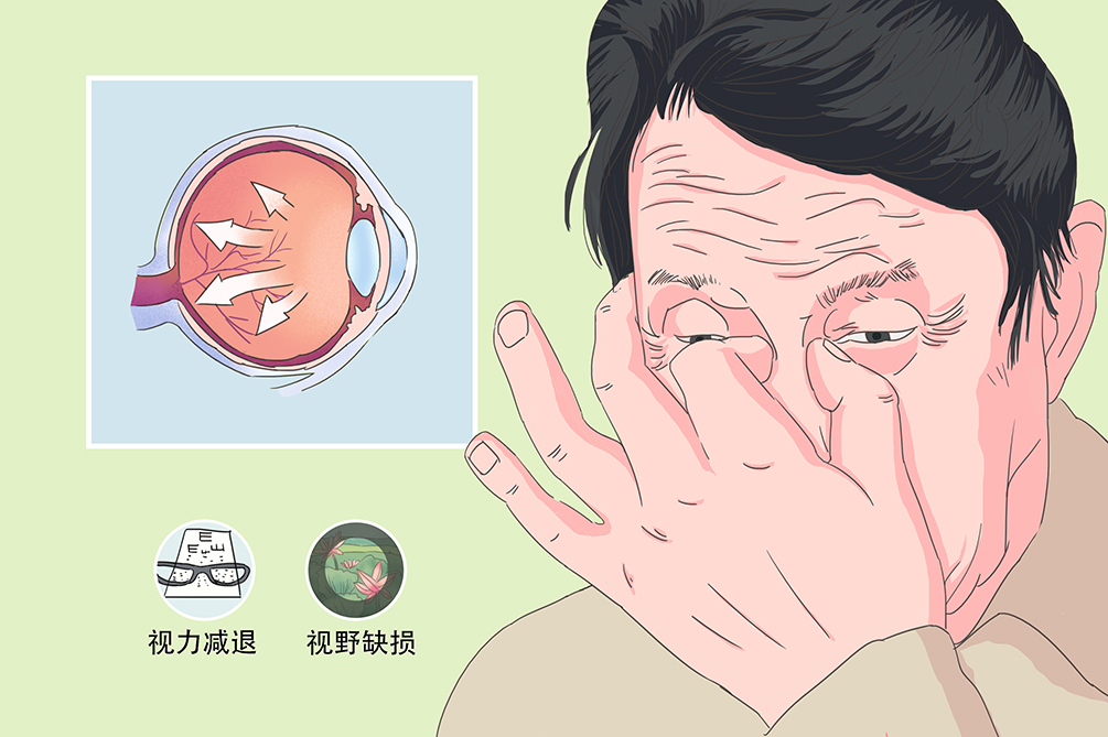 - 视力下降:青光眼可导致视力逐渐下降,尤其是在急性高眼压时视力下降更为明显。高眼压使角膜内皮不能将角膜内的水分正常排出,导致角膜上皮水肿,从而影响视力。