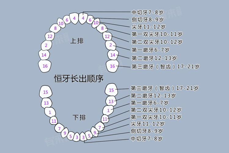 - 进入恒牙阶段,孩子的牙齿将经历一次重要的替换过程。6岁左右,孩子会萌出第一颗恒牙,即六龄齿,随后乳牙逐渐被恒牙替换。大约在12-14岁,除第三磨牙外的其他恒牙能够基本长齐。需要注意的是,恒牙的生长和替换过程可能因个体差异而有所不同,家长应耐心观察并给予适当的护理。