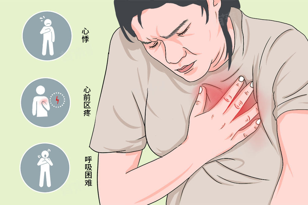 2、心前区疼痛:疼痛位置并不固定,多集中在左胸乳房下心尖部附近,也可能出现在胸骨下或右胸前。疼痛性质丰富,刺痛、隐痛、闷痛等情况都有可能发生。疼痛发作时间也无规律,短可瞬间即逝,长则可能持续数小时甚至数天。
