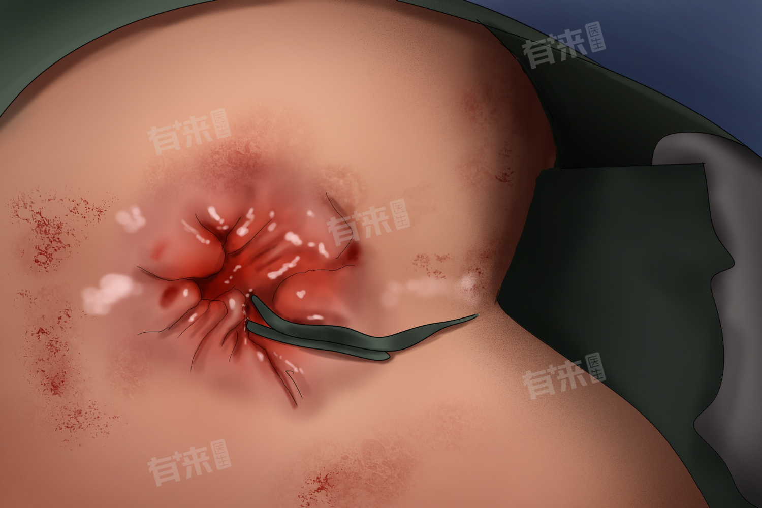 2、肛裂:肛管皮肤全层纵行裂开并形成慢性溃疡称为肛裂,患者在排便时,干结的粪便通过肛管会撕裂肛门皮肤,损伤血管,从而出现便血,血液鲜红,量较少,通常在手纸上可见血迹,或排便后滴出少量鲜血。同时肛裂患者会伴有剧烈的肛门疼痛,疼痛呈周期性,便后疼痛可暂时缓解,但随后因肛门括约肌痉挛,又会出现长时间的疼痛。
